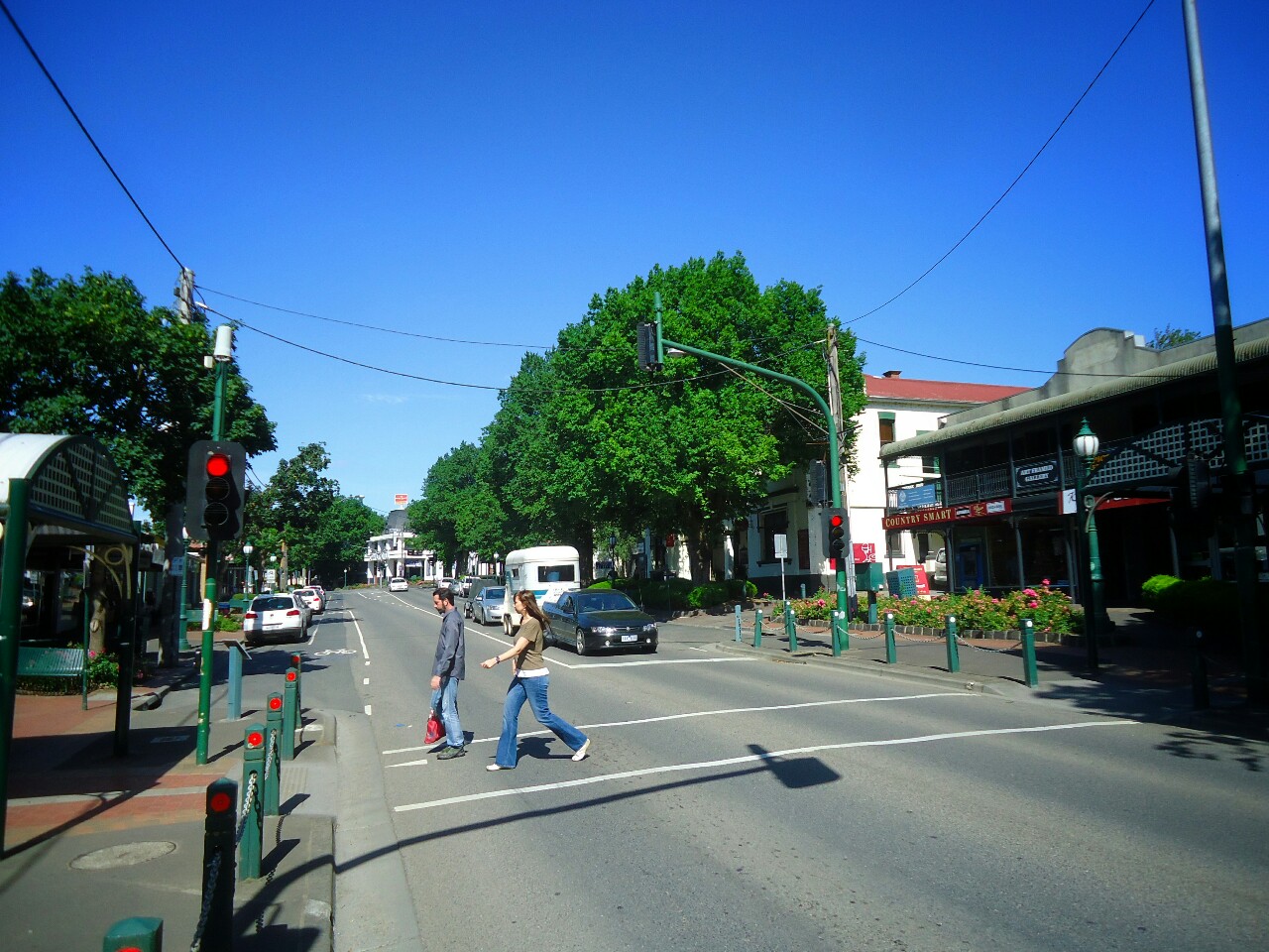 The house is located in the middle of Eucaliptus forrest, not far from Healesville (photo below left), one hour driving from Melbourne. The place is a paradise for all nature lovers, like us. Hills offer great hikking paths and two creeks provide idilic spots for finding peace. But the forrest holds other traps. Destructive bushfire broke out in this area, seven years ago. Traces are still visible (photo below right.) The building survived thanks to home made system of pipes and water sprinklers around the roof. I found it very clever and efficient solution.