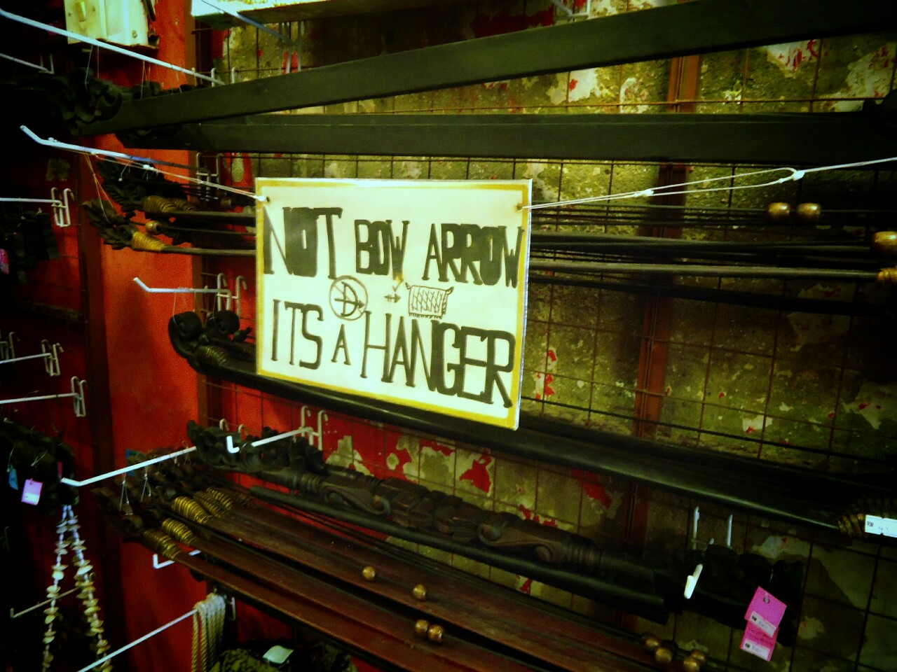 And talking about signs, I have to mention one in souvenir shop - photo down right. "Not a bow arrow, it's a hanger." Haha, obviously someone tried to play Robin Hood with a hanger. I have to admit, it does look a bit bow like :)