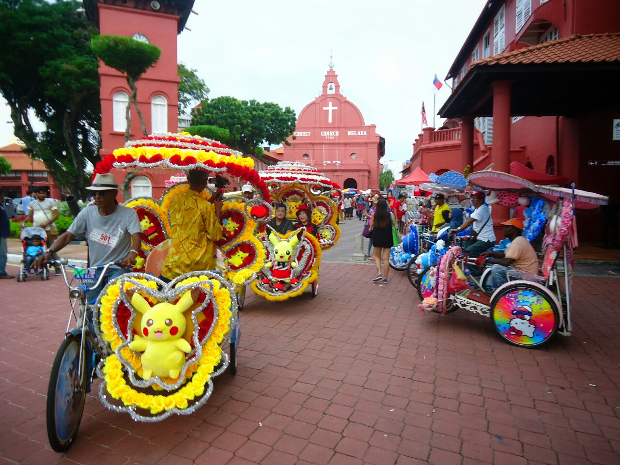 One of the main attractions of Malacca are somehow overdecorated trishaws - half bicycle, half rickshaw. There are like a magnet for chinese tourists :)