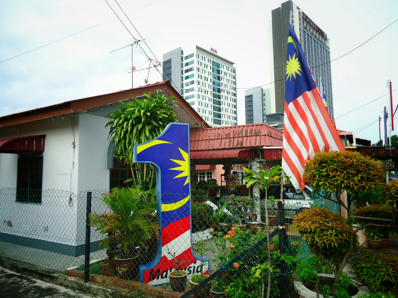 Malaysia in general is a very colourful country. Malay represent the majority though. But Chinese are not far behind in numbers. British colonist brought them from Hong Kong to work in mines. And then there are also Indians. Their jobs were on the tea plantations. Each brought his own language, religion and habits with thimself. In an effort to keep people united, the government does a propaganda. On every step you can see a number "1" in colours of national flag. This means: "we're all one!"
