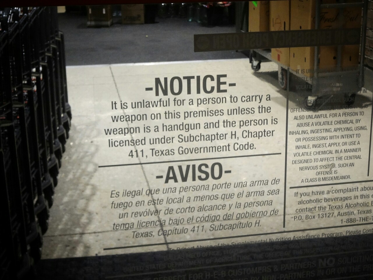 One sign was especially interesting. It was a notice on the doors of a supermarket, saying that it's against the law to bring a weapon inside, unless you have a license for it. It looks you don't need it otherwise :)