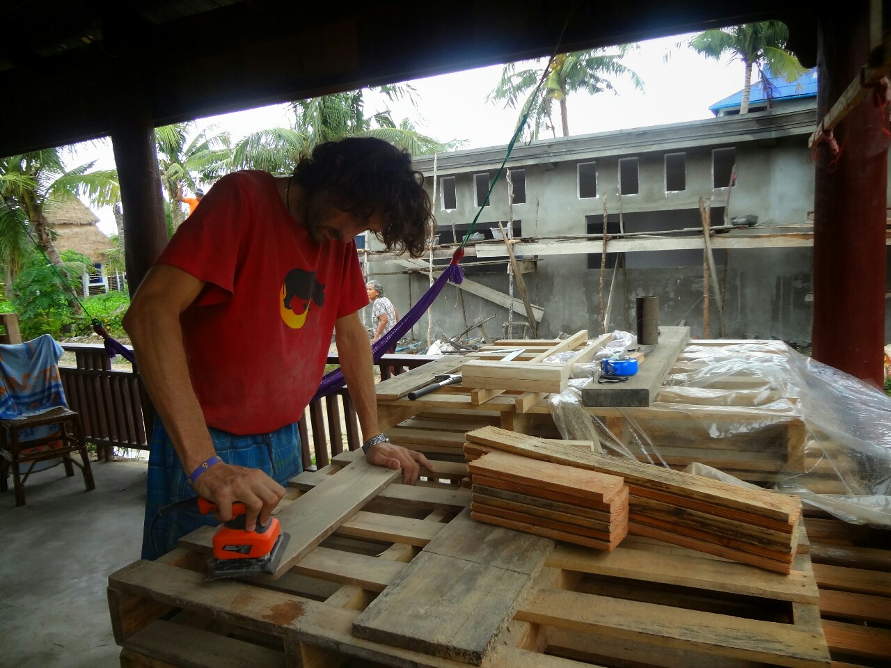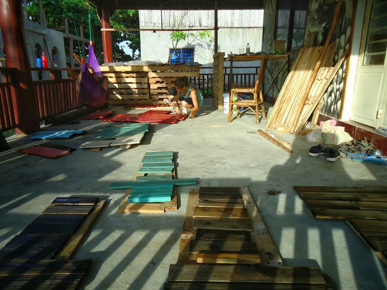 What does that mean? We were most of the time having fun but also build some furniture from wooden palettes, different signs and tables. We were occupied with planting peanuts, pineapples and similar stuff. We helped around the house in with organization in general.