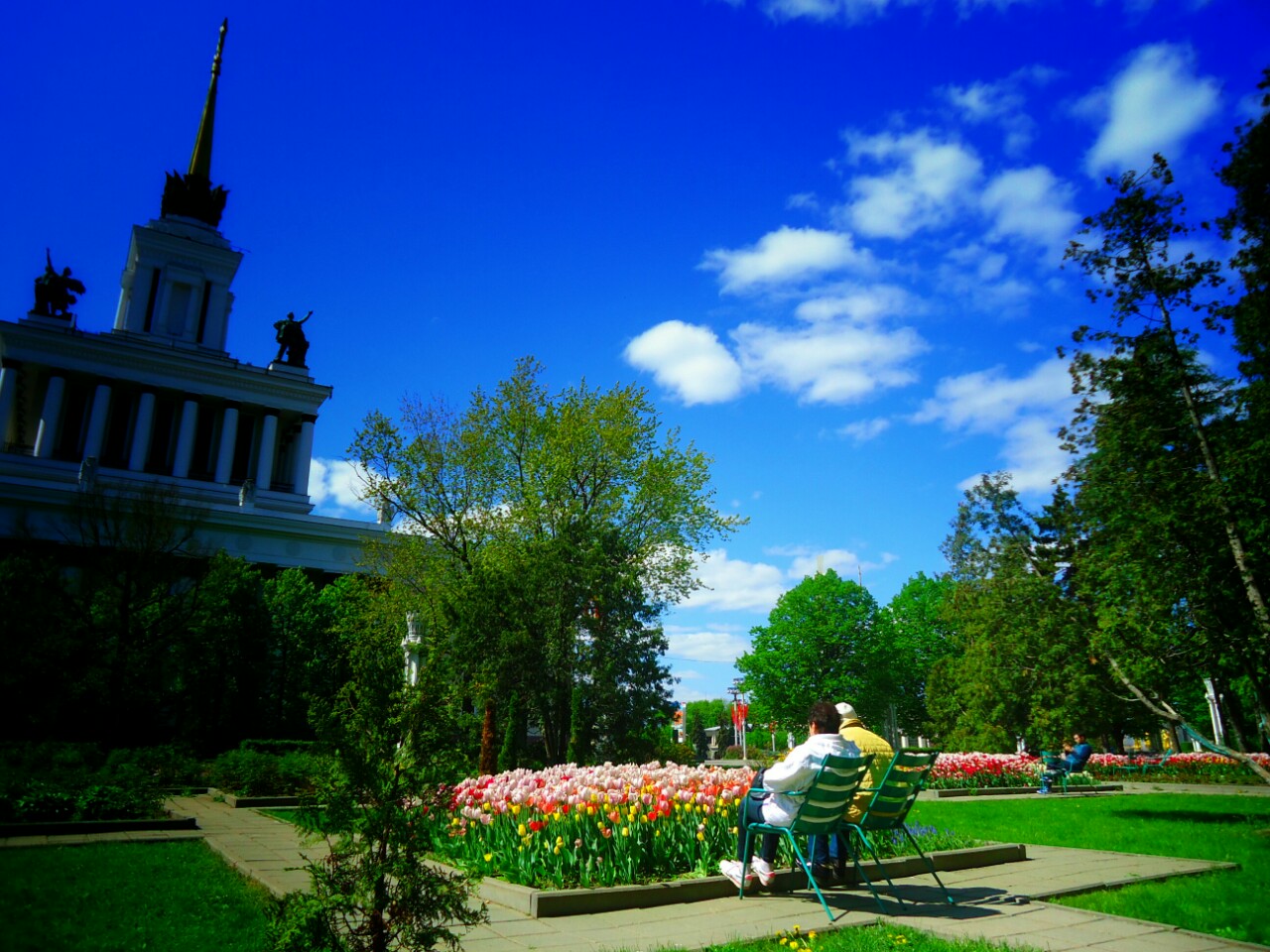 One more interesting thing. When you walk the parks you see chairs standing by the flowers. First I thought they were left there by the people who maintain the garden. But then I go further and see random peole just sitting there, talking, sun bathing...