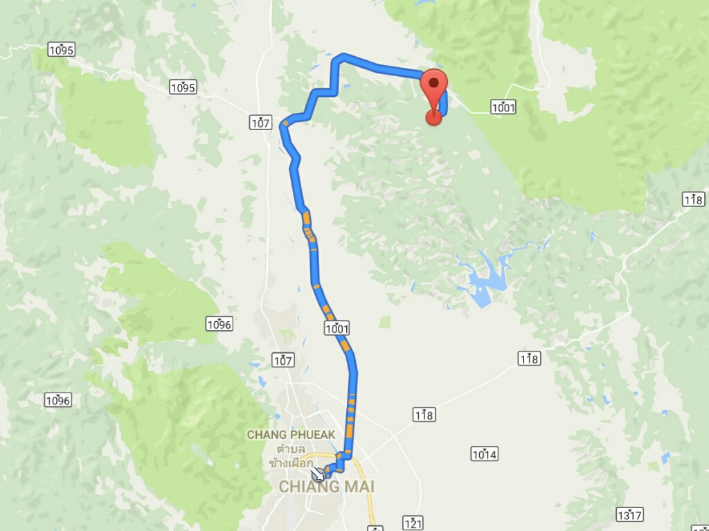 The directions are quite straight forward. Just get to the main road 1001 towards Phrao and follow it for about 50 kilometres. Then you arrive to the Y-crossroads. Not very clearly visible sign shows the way right to Buatong.