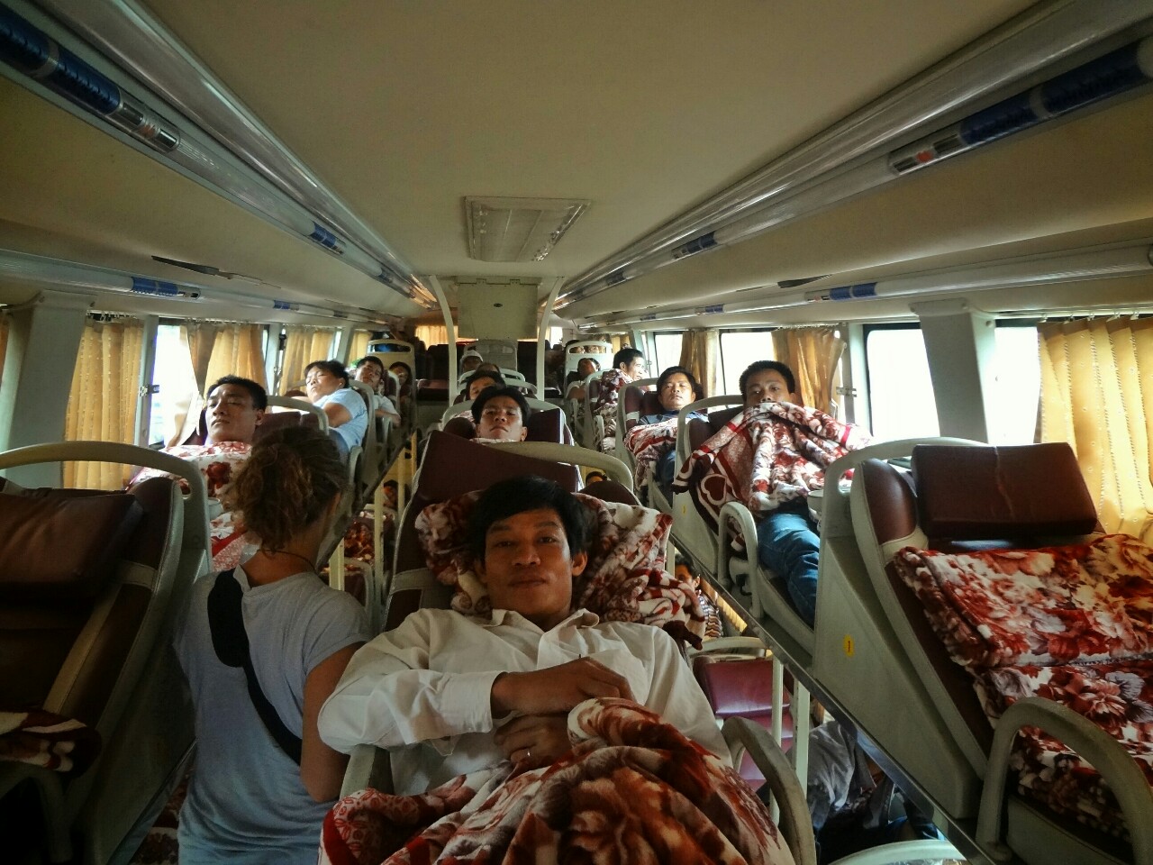 Velik del poti do Ninh Binha sva tako premagala na spalnem avtobusu. Kako to izgleda, verjetno nočete vedeti. A vseeno prilagam sliko spodaj desno.