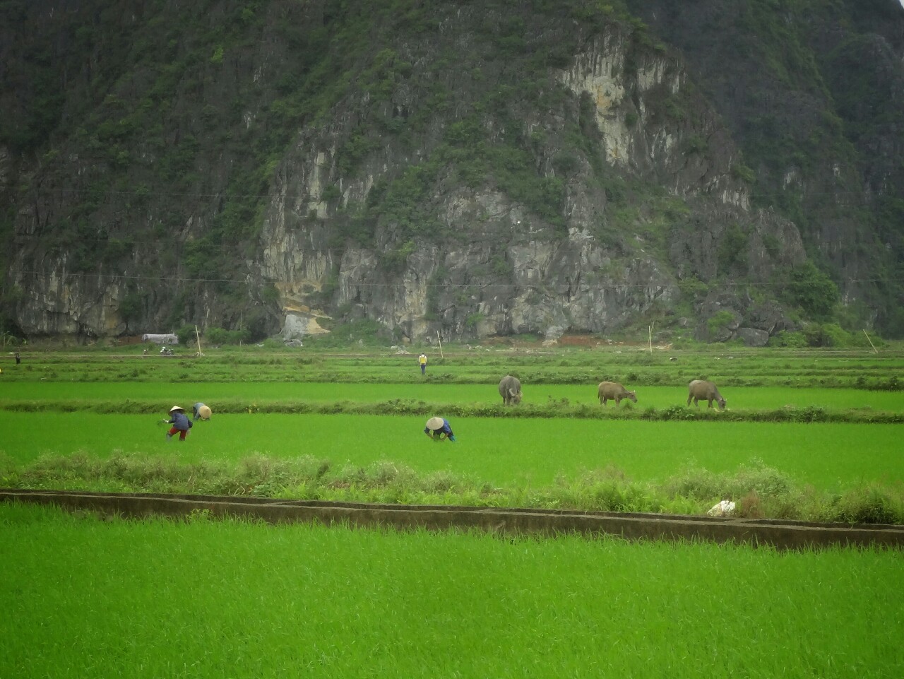 Nedaleč od Ninh Binha se nahaja vasica Tam Coc. Tukaj sva naletela na nadpovprečno veliko število zahodnih turistov v primerjavi s prejšnjimi dnevi. A z nekaj sprehajanja se vseeno najde kak umirjen kotiček sredi riževih polj in apnenčastih skal.