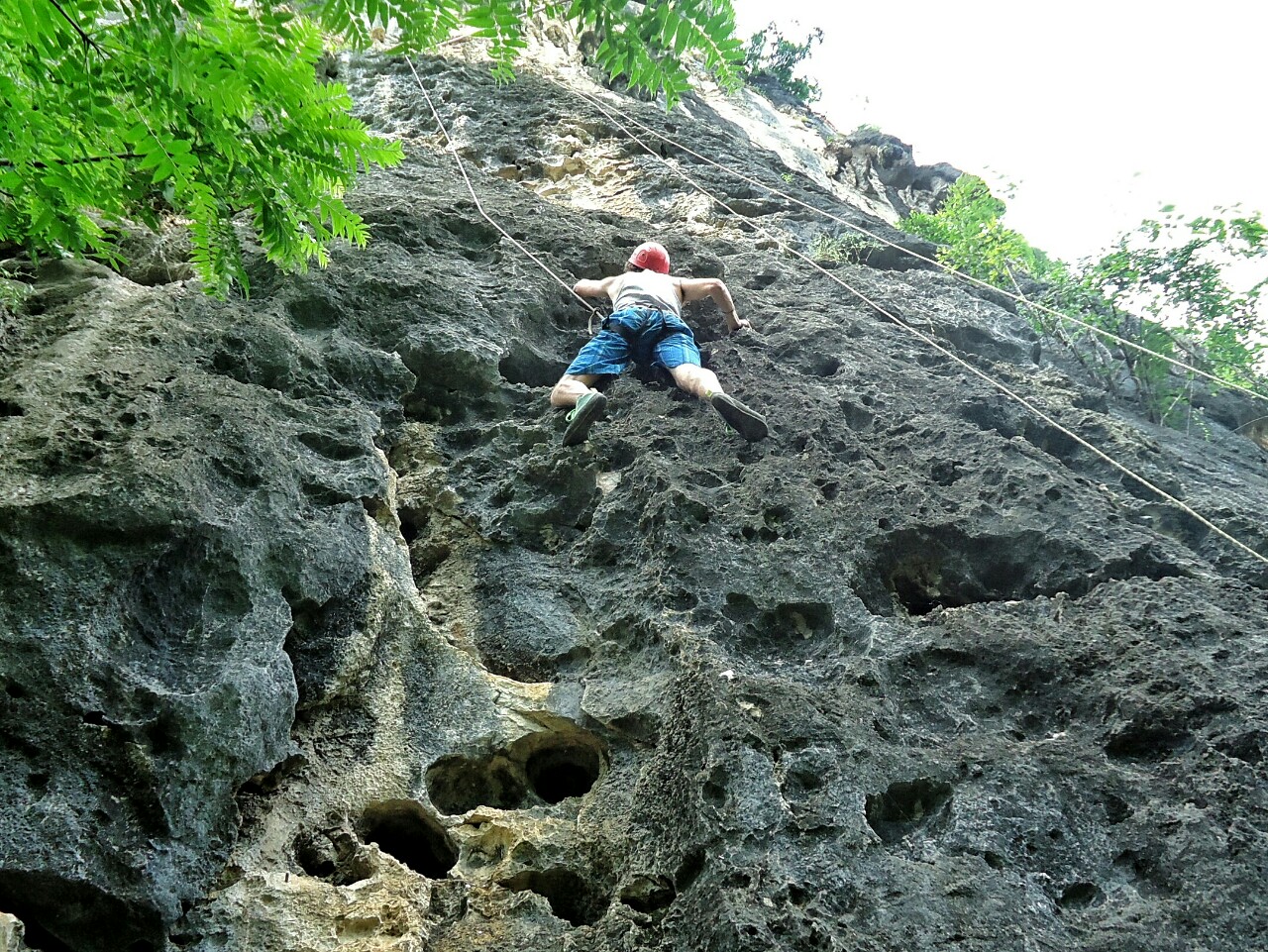 Omenil sem že, da je celotno območje pravi raj za plezalce. Tudi lastnik hostla Leo, prvi iz leve na desni sliki, je strasten plezalec. Zato smo se dva krat podali na bližnjo steno. Smeri so na vsakem koraku. Najbližja je bila 100 metrov od hostla...