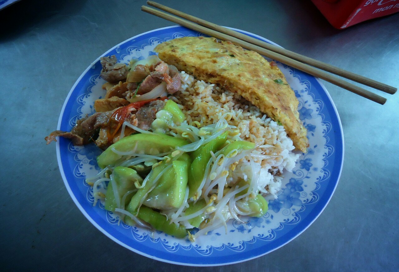 Kaj pomeni poceni? Recimo povsem dostojno porcijo riža z zelenjavo, mesom in jajčno omleto (spodaj levo) lahko z nekaj iskanja najdete za 25.000 vietnamskih Dongov ali skoraj točno 1€. Mimogrede, Dongi so zagotovo med bolj zvirnimi imeni za denarno valuto. Par centov dražji bo verjetno Phở - juha z riževimi rezanci, zelenjavo in še nečim. Ta dodatek je običajno goveje ali piščančje meso.