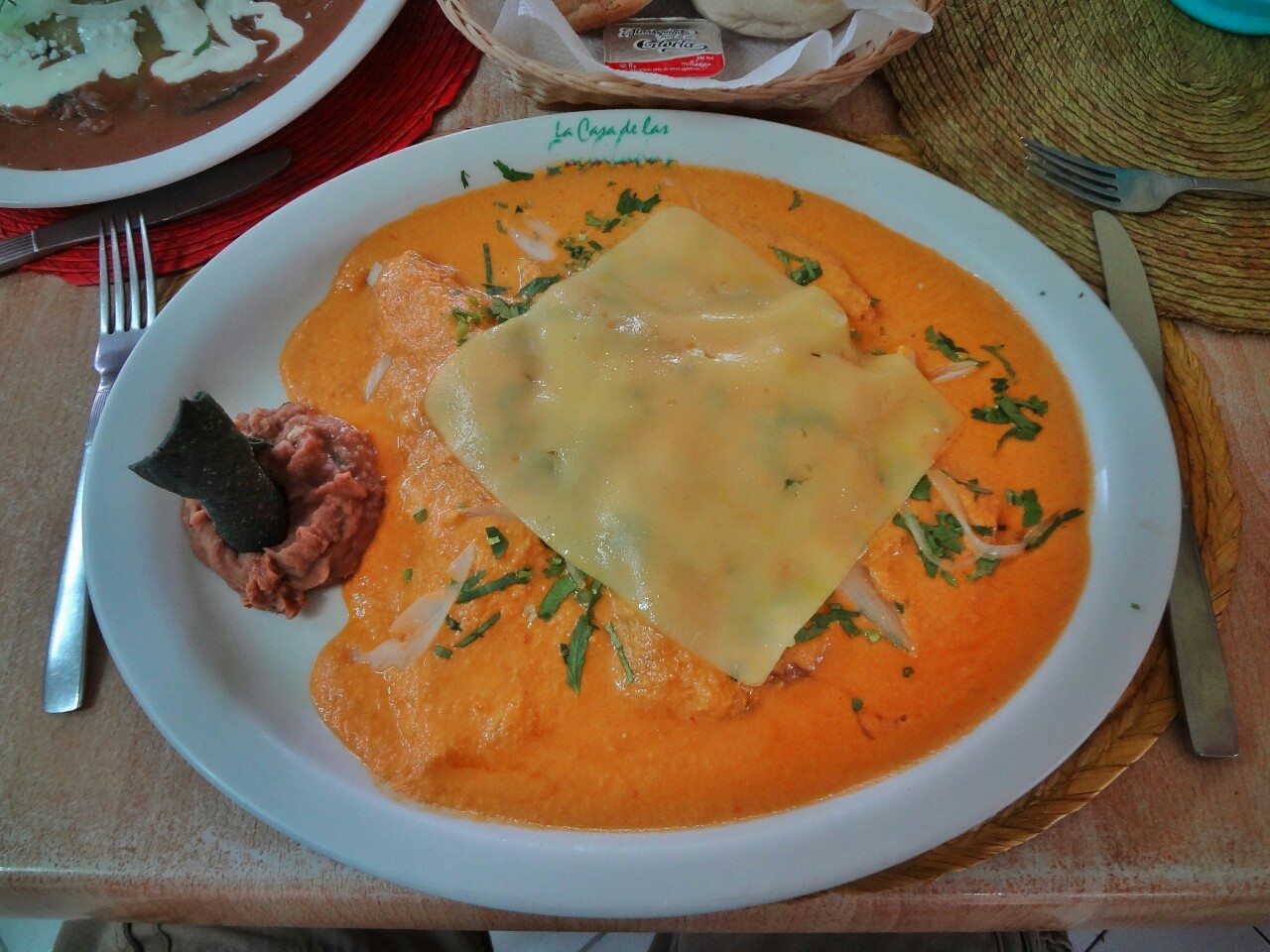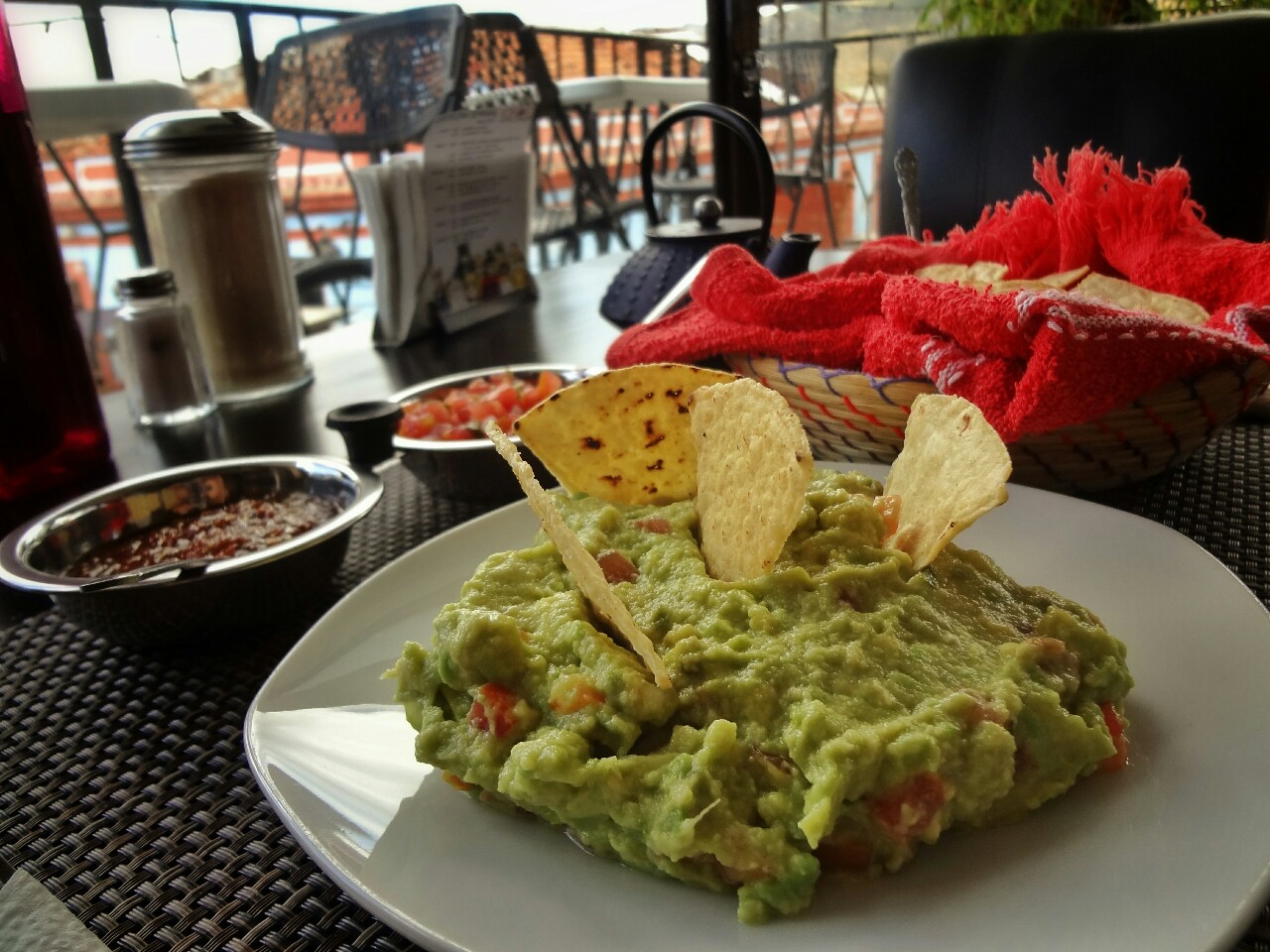 Omeniti moram še Guacamole, namaz iz avokada (spodaj levo) in tamal (spodaj desno.) Tamal je neke vrste polenta, polnjena s mesnim ali zelenjavnim nadevom in pečena v bananinem ali koruznem listu. V mojem primeru je posuta še s čebulo ter minimalno količino maksimalno pekoče omake. Tamal in večina mehiških jedi, izvira iz majevske civilizacije.