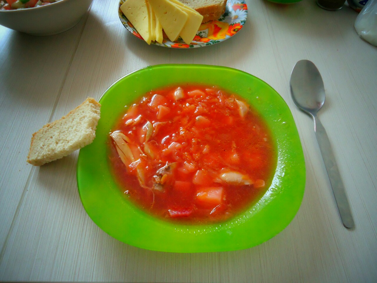 Počasi se mi že izteka ruska viza, pa še nisem omenil lokalne gastronomije. Torej, za rusko kuhinjo so zelo značilne juhe na milijon načinov. Spodaj ribja juha Uha (levo) in boršč (desno). Še nižje levo so Peljmeni. Ne ravno tradicionalno rusko, ampak jih je potrebno omeniti, zaradi svoje priljubljenosti. Mi bi jim verjetno rekli ravioli, čeravno okus vseeno ni identičen temu, kar sem bil navajen. Skrajno desno pa še Pirog. To je testo v katerem se skrivajo različni nadevi. V konkretnem primeru, čebula in jajca.