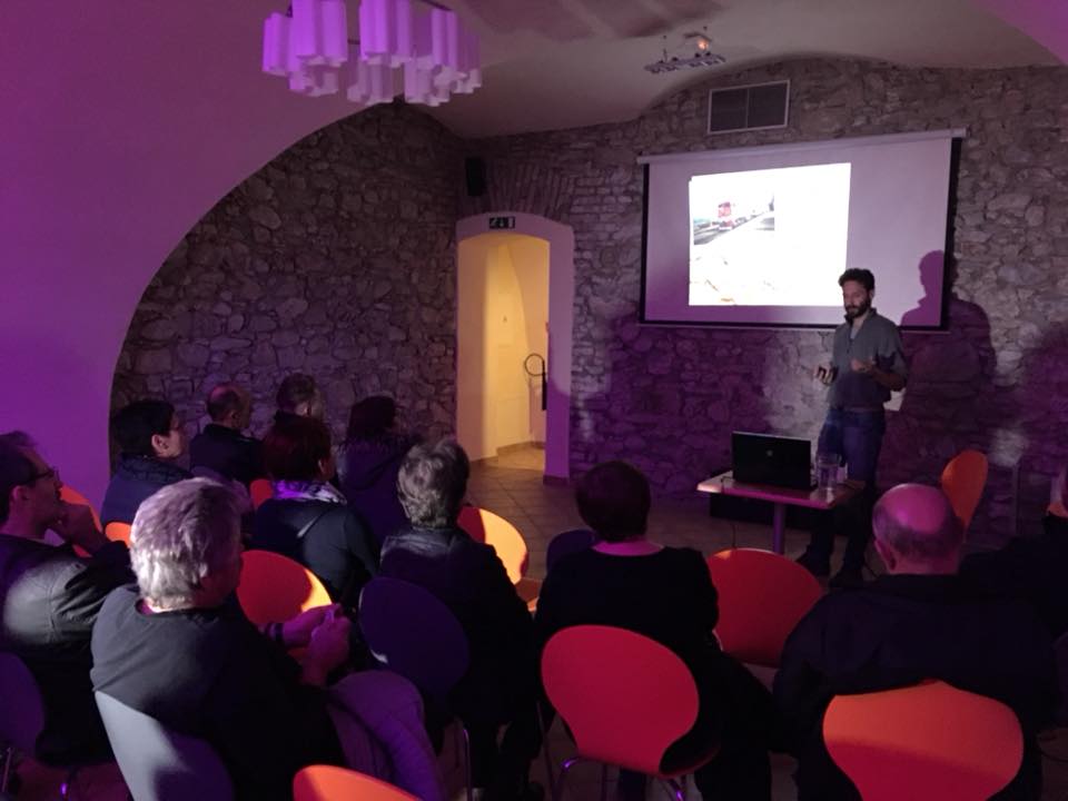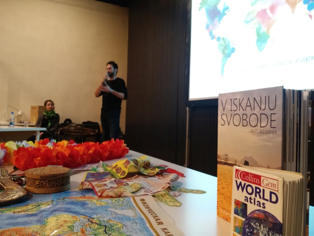 Za zadnje potopisno predavanje v tej sezoni sva se odzvala na povabilo Koroškega mladinskega kulturnega centra Kompleks. Čudoviti prostori centra so dali dogodku poseben čar. Zanimanje študentov za najine dogodivščine je bilo veliko.
